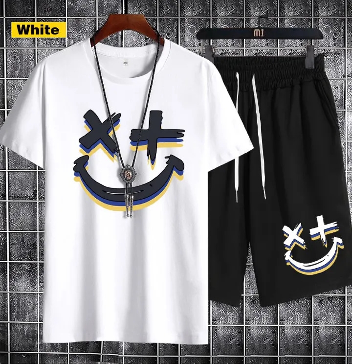 This is a very stylish men's crew neck short sleeve T-shirt set (2 piece set) top + pants. It was carefully designed