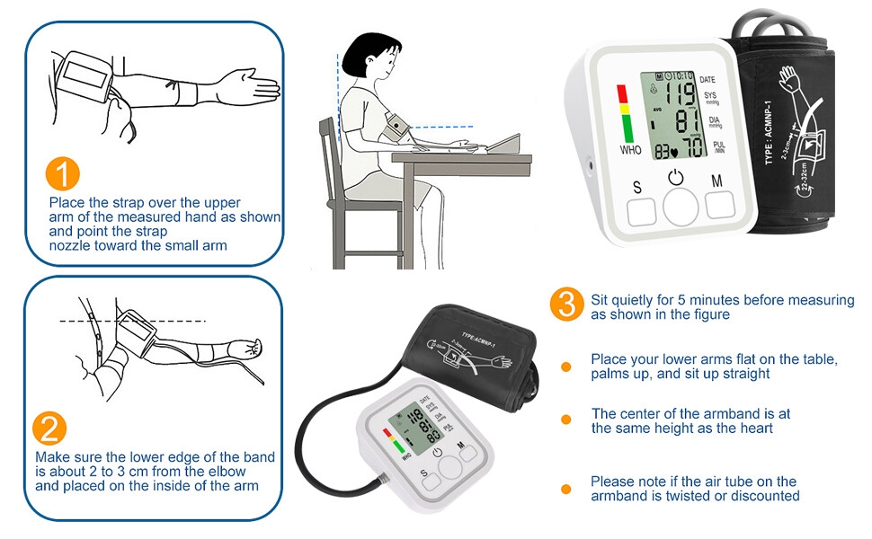 Step 3-.Press START/STOP button to start measurement. Keep your arm in a relaxed position.