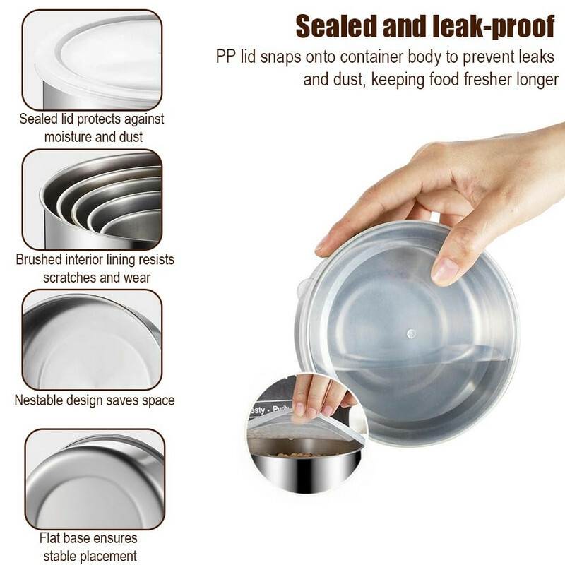 Built to withstand the demands of a busy kitchen, these containers are made from high-quality, rust-resistant stainless steel. Unlike plastic alternatives that crack under heat or stain over time, these bowls remain pristine even after heavy use. They are perfect for storing everything from dry grains to oily sauces without absorbing odors.