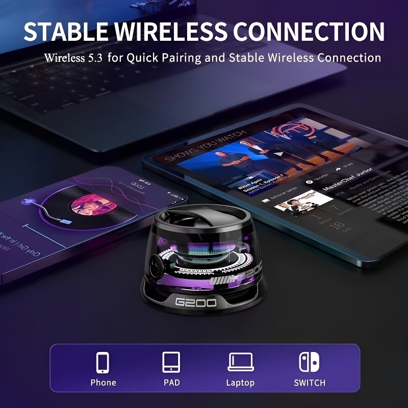 Don't let the size fool you! The G200 packs a powerful 40mm driver that delivers crystal-clear audio and deep, thumping bass. Perfect for personal vibes or small gatherings, it’s the loudest mini-companion you’ll ever own.